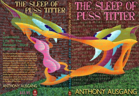 Puss-tastic news! The final proof of The Sleep of Puss Titter, Anthony Ausgang‘s debut novel of psyber-tropic hypertext, has been approved! K-Bomb is busy printing up copies for the enjoyment of you and all your friends. Order your copy in two weeks on Amazon and get it autographed by Ausgang! Hell, buy two copies of this first edition and put one away to sell in twenty years for the rugrat’s college education…